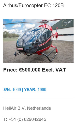- 2026-01-21: te koop bij HeliAir NL - vraagprijs €500.000 excl BTW - call +31 (0) 629042645