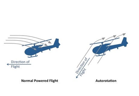 Ondanks het feit dat de motor geen vermogen meer aanlevert “zweeft” de helikopter dus naar beneden omdat de rotorbladen nog steeds draaien en enige draagkracht produceren. Doordat de hoofd- en de staartrotor mechanisch met elkaar verbonden zijn wordt de staartrotor aangedreven door de hoofdrotor. De piloot kan dus nog steeds het voetenstuur gebruiken.